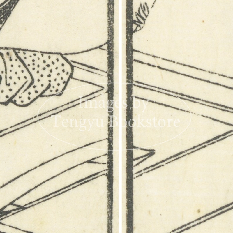 本来は2枚に分けて描かれた作品であるため、色味や図案の整合に若干の不統一があることをご了承ください。
