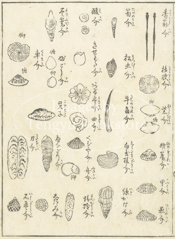 江戸中期に刊行された貝類の解説書「貝盡浦之錦」の挿絵。