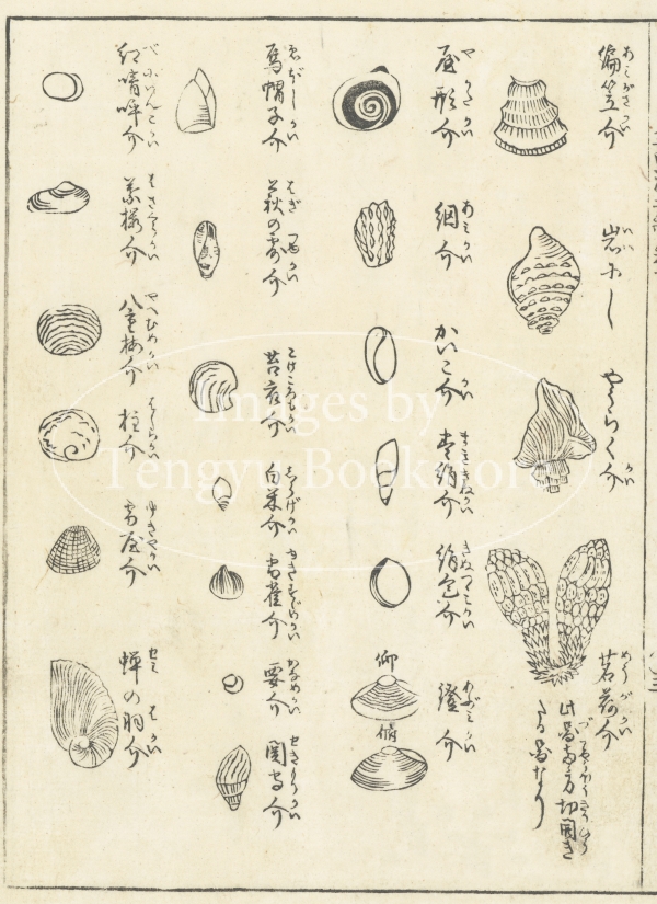 江戸中期に刊行された貝類の解説書「貝盡浦之錦」の挿絵。