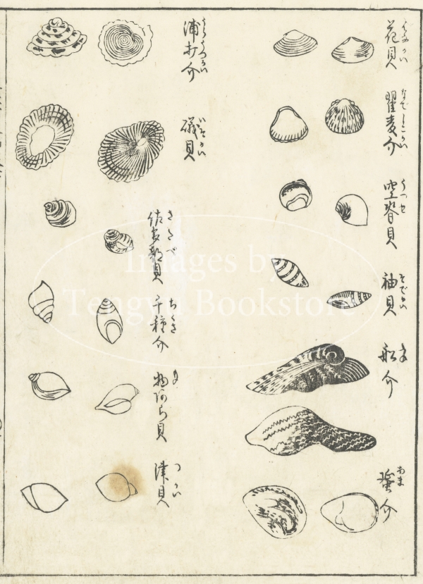 江戸中期に刊行された貝類の解説書「貝盡浦之錦」の挿絵。