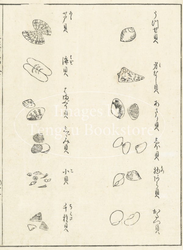 江戸中期に刊行された貝類の解説書「貝盡浦之錦」の挿絵。