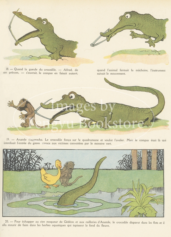19世紀末~20世紀初期フランスのイラストレーター、バンジャマン・ラビエ(1864-1939)の絵本「アフリカのジェデオン」の1ページ。