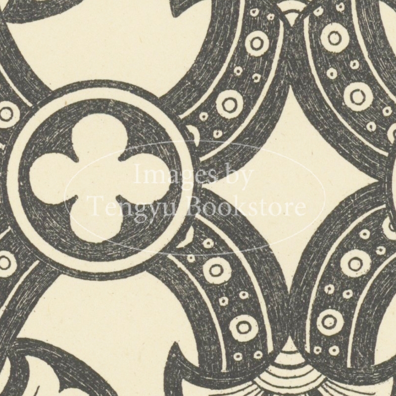19世紀イギリスの装飾図案家ヘンリー・ショウ(1800-1873)によるヨーロッパの古典的装飾図案集「オーナメント百科」(後版)中の1ページ。