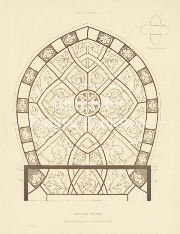 19世紀イギリスの装飾図案家ヘンリー・ショウ(1800-1873)によるヨーロッパの古典的装飾図案集「オーナメント百科」(後版)中の1ページ。