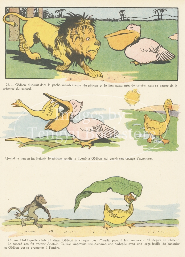 19世紀末~20世紀初期フランスのイラストレーター、バンジャマン・ラビエ(1864-1939)の絵本「アフリカのジェデオン」の1ページ。