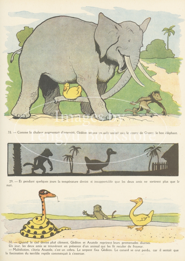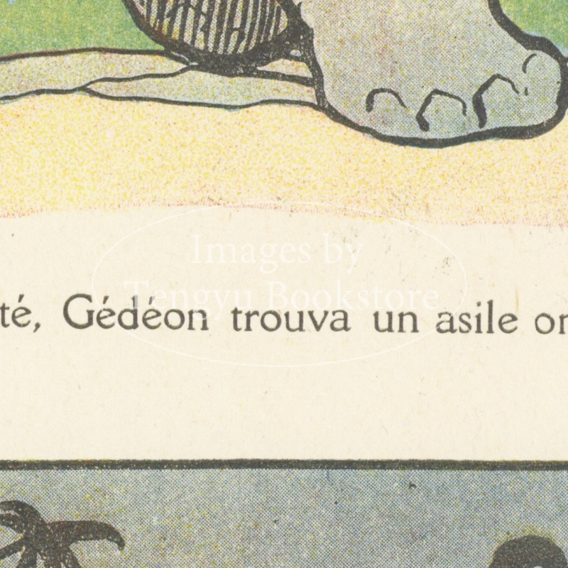 19世紀末~20世紀初期フランスのイラストレーター、バンジャマン・ラビエ(1864-1939)の絵本「アフリカのジェデオン」の1ページ。