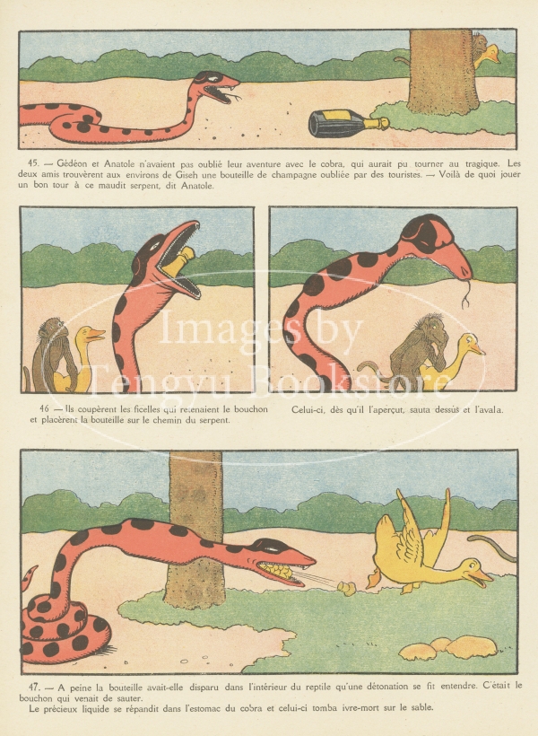 19世紀末~20世紀初期フランスのイラストレーター、バンジャマン・ラビエ(1864-1939)の絵本「アフリカのジェデオン」の1ページ。