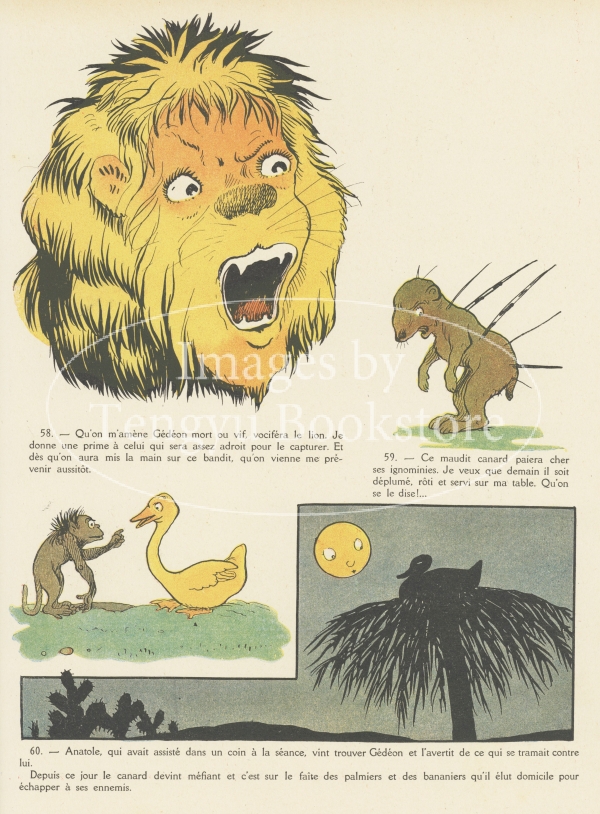 19世紀末~20世紀初期フランスのイラストレーター、バンジャマン・ラビエ(1864-1939)の絵本「アフリカのジェデオン」の1ページ。