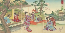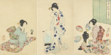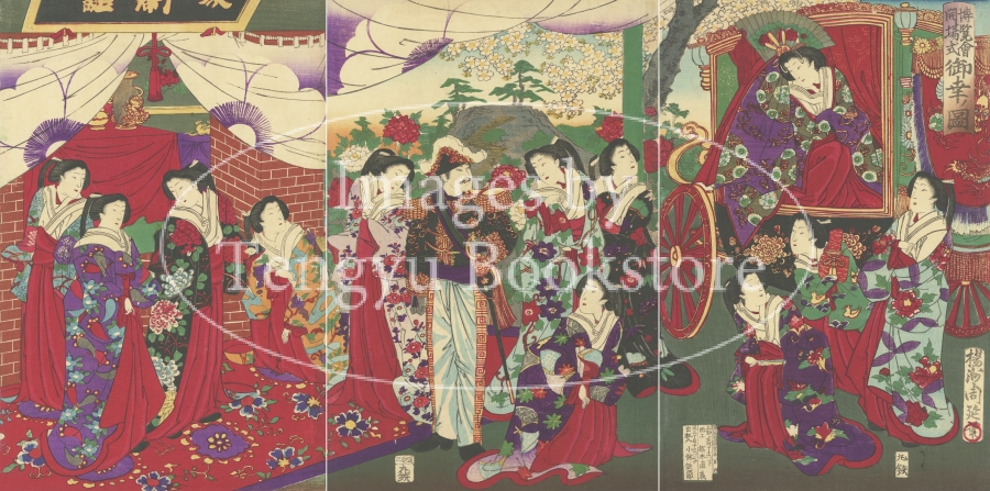 江戸末期~明治の浮世絵師 楊洲周延(ようしゅうちかのぶ:1838-1912)による三枚続の浮世絵。