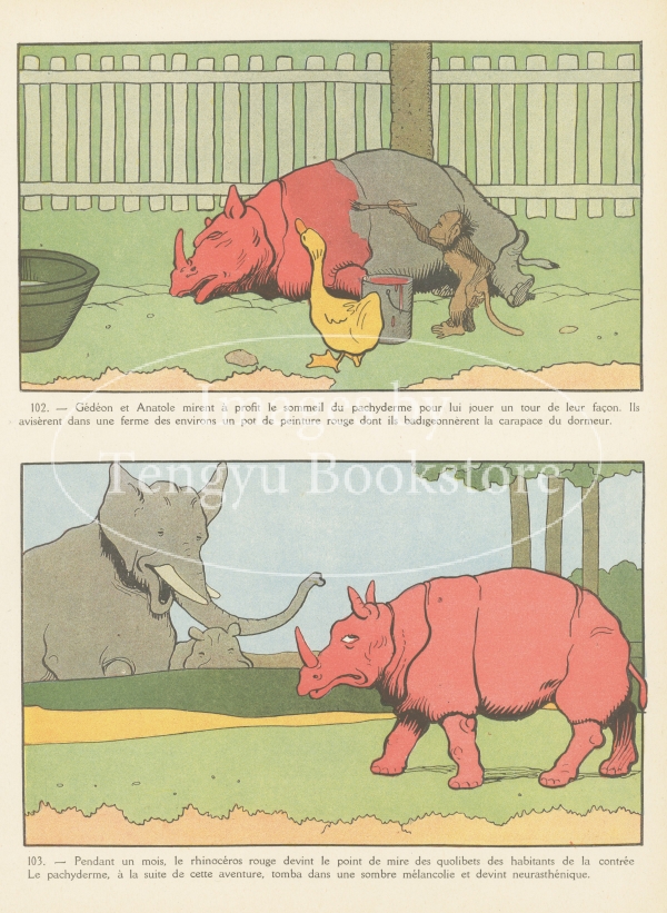 19世紀末~20世紀初期フランスのイラストレーター、バンジャマン・ラビエ(1864-1939)の絵本「アフリカのジェデオン」の1ページ。