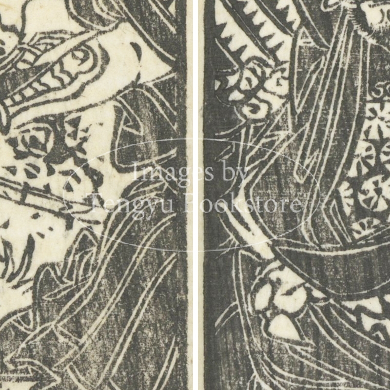 本来は2枚に分けて描かれた作品であるため、色味や図案の整合に若干の不統一があることをご了承ください。