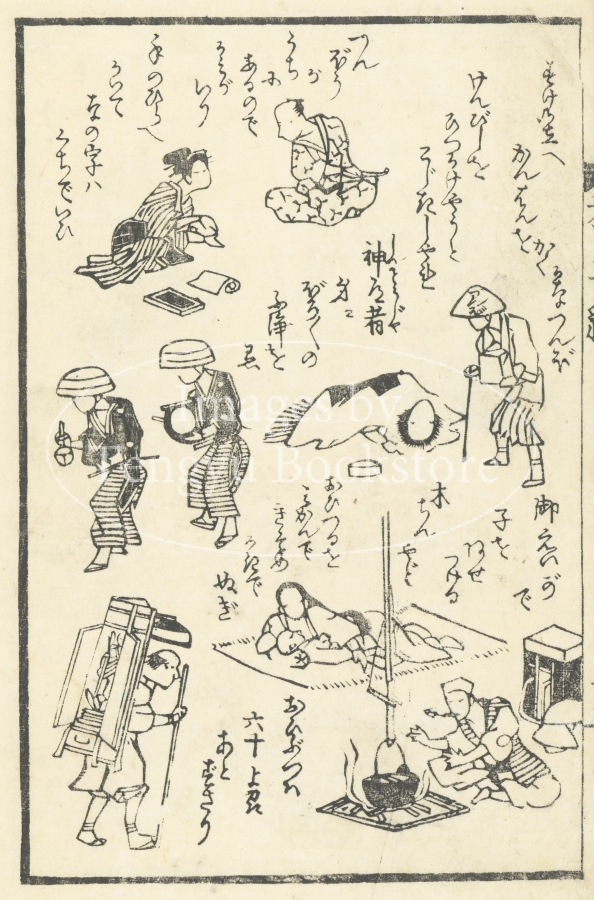 江戸中期から幕末にかけて出版された川柳句集「誹風柳多留」から選んだ句に絵をつけた「画本柳多留」からの一枚。