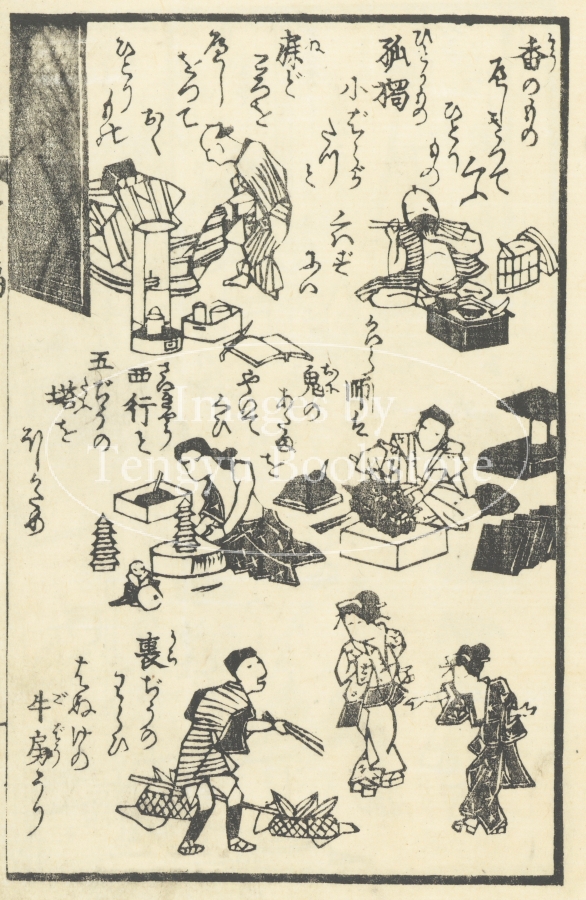 江戸中期から幕末にかけて出版された川柳句集「誹風柳多留」から選んだ句に絵をつけた「画本柳多留」からの一枚。