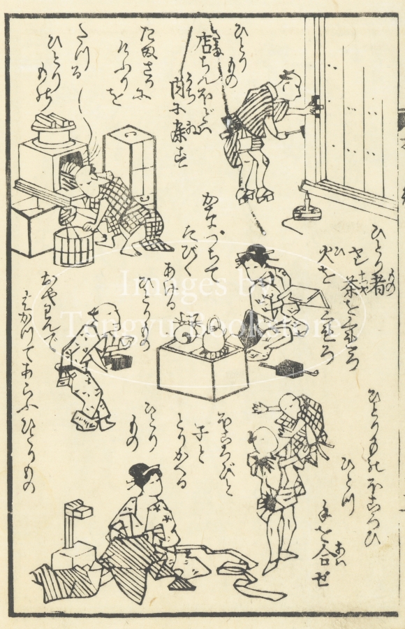 江戸中期から幕末にかけて出版された川柳句集「誹風柳多留」から選んだ句に絵をつけた「画本柳多留」からの一枚。