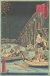 明治初期の浮世絵師 昇斎一景による、両国の花火の様子を描いた浮世絵。