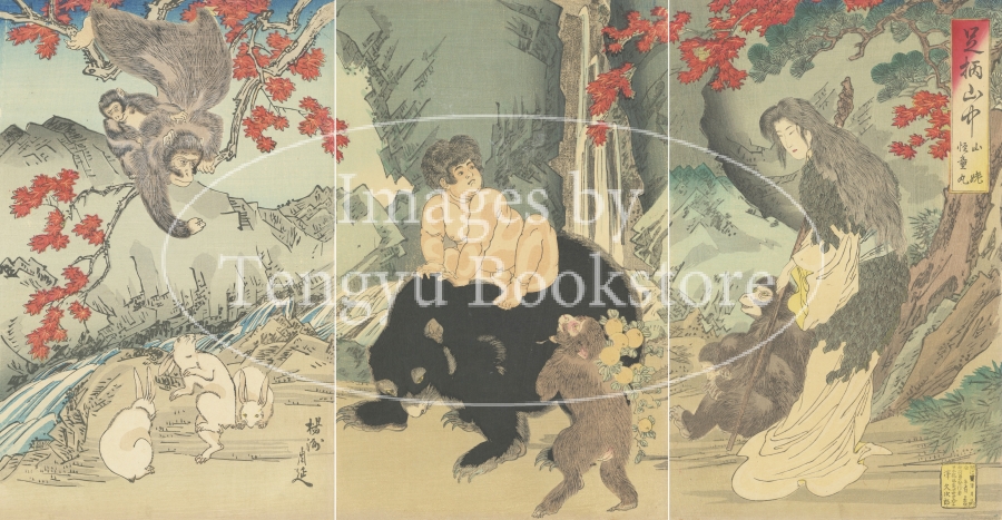 足柄山で、山姥の子供として生まれたという怪童丸(金太郎)伝説を描いています。