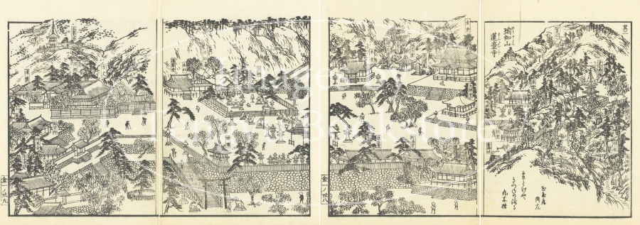 日本全国の金毘羅神社の総本宮である象頭山金毘羅大権現への参詣案内書「金毘羅参詣名所図会」収録の挿絵。