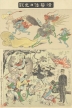 上側に妖怪たちの百鬼夜行、下側に日清戦争をモチーフにした絵巻という構成になっています。