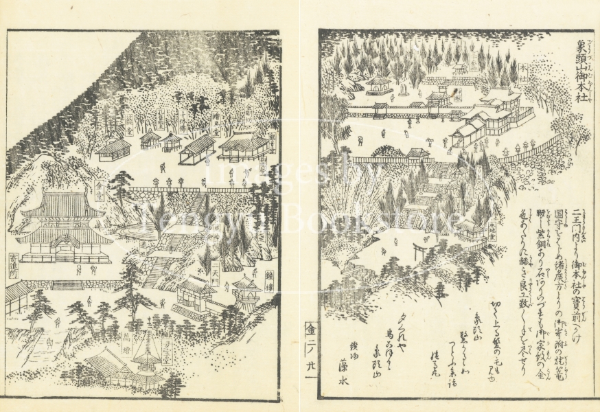 日本全国の金毘羅神社の総本宮である象頭山金毘羅大権現への参詣案内書「金毘羅参詣名所図会」収録の挿絵。