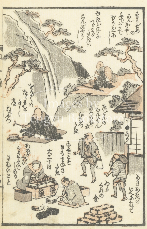 ユーモラスな挿絵を描いているのは、北斎の門人でもあった浮世絵師 岳亭春信(生没年不詳)です。