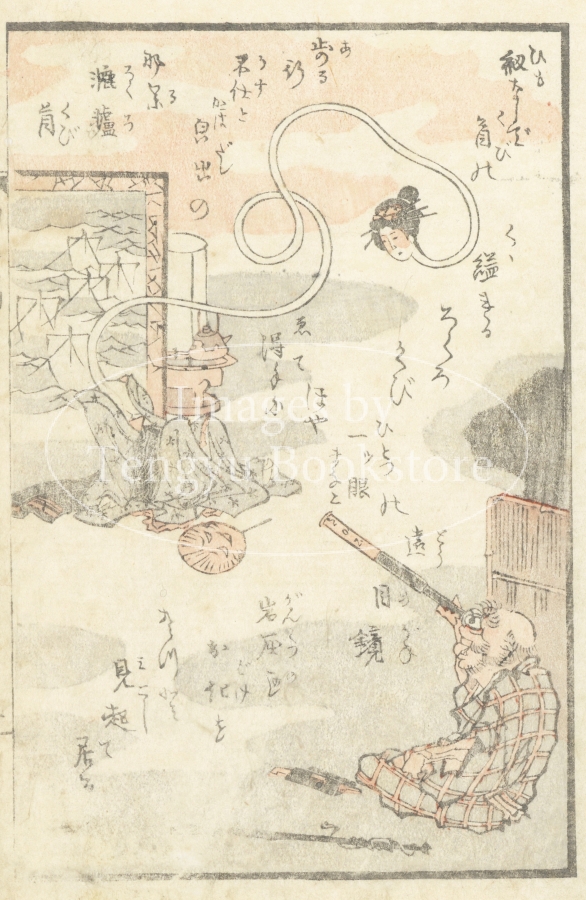 江戸中期から幕末にかけて出版された川柳句集「誹風柳多留」から選んだ句に絵をつけた「画本柳多留」からの一枚。