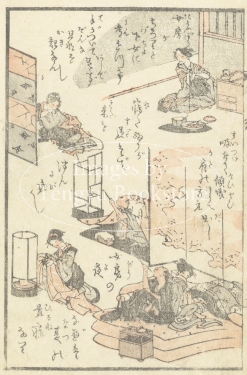 江戸中期から幕末にかけて出版された川柳句集「誹風柳多留」から選んだ句に絵をつけた「画本柳多留」からの一枚。
