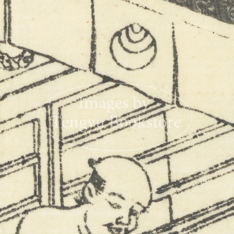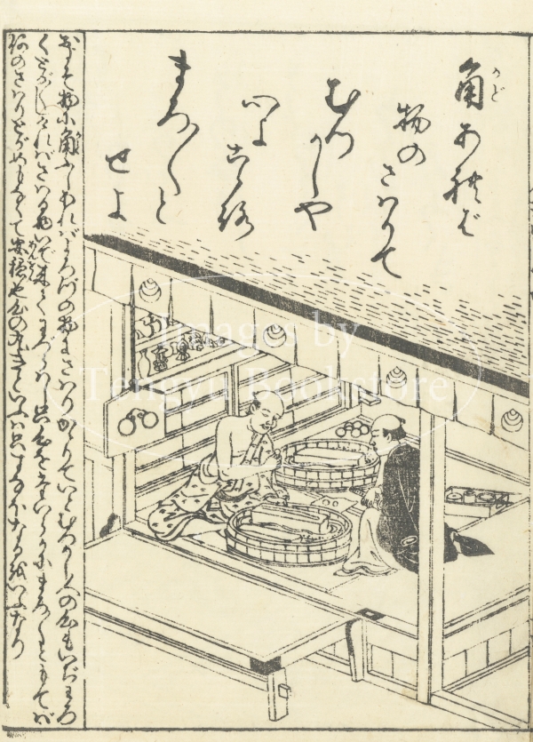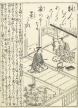 江戸前期から中期にかけて活躍した京都の絵師 西川祐信(にしかわ すけのぶ:1671-1750)による絵本の挿絵。北条時頼(最明寺殿)による教訓歌に絵をつけています。