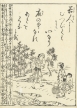 江戸前期から中期にかけて活躍した京都の絵師 西川祐信(にしかわ すけのぶ:1671-1750)による絵本の挿絵。北条時頼(最明寺殿)による教訓歌に絵をつけています。