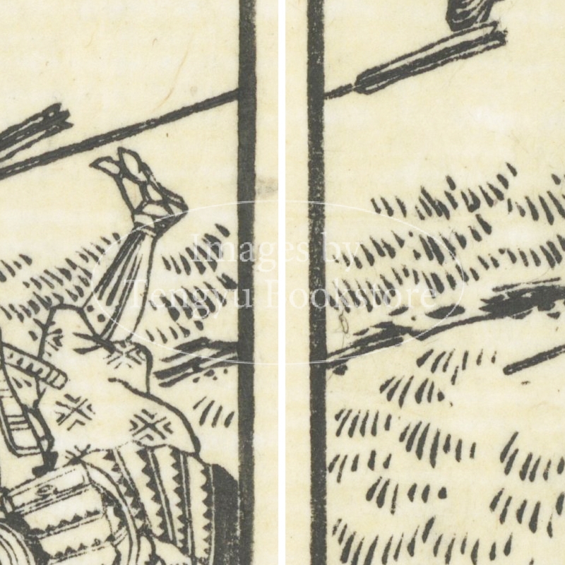 本来は2枚に分けて描かれた作品であるため、色味や図案の整合に若干の不統一があることをご了承ください。