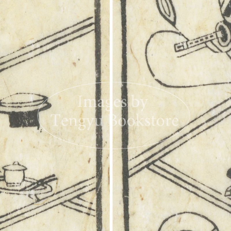 本来は2枚に分けて描かれた作品であるため、色味や図案の整合に若干の不統一があることをご了承ください。