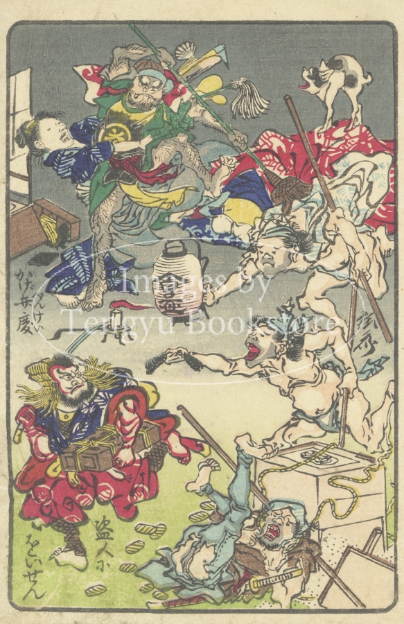 優れた筆力と流派に留まらない独自の画風で海外でも人気の高い幕末-明治期の絵師、河鍋暁斎(1831-1889)の戯画集「狂斎百図」の一図。