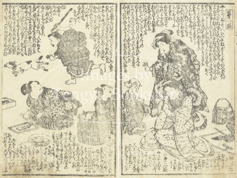 江戸時代に刊行された草双紙「朧月猫草紙」の挿絵。