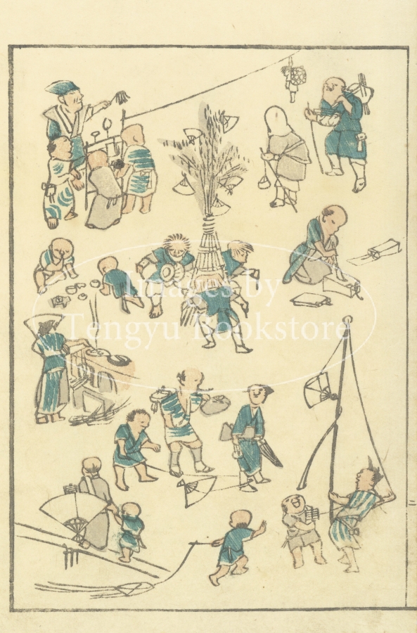 様々な状況の人物をデフォルメした略画を全ページに配した愛らしい画集であるとともに、江戸時代人の仕草の記録でもある興味深い一冊。