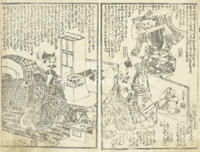 江戸時代に刊行された草双紙「朧月猫草紙」の挿絵。