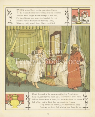 19世紀末イギリスを代表する絵本画家ウォルター・クレイン(1845-1915)の兄で、書籍デザイナーでもあったトーマス・クレイン(1843–1903)の絵本「外国にて」の挿絵。