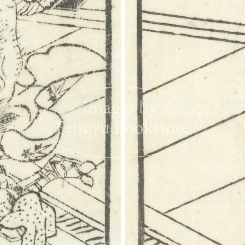 本来は2枚に分けて描かれた作品であるため、色味や図案の整合に若干の不統一があることをご了承ください。