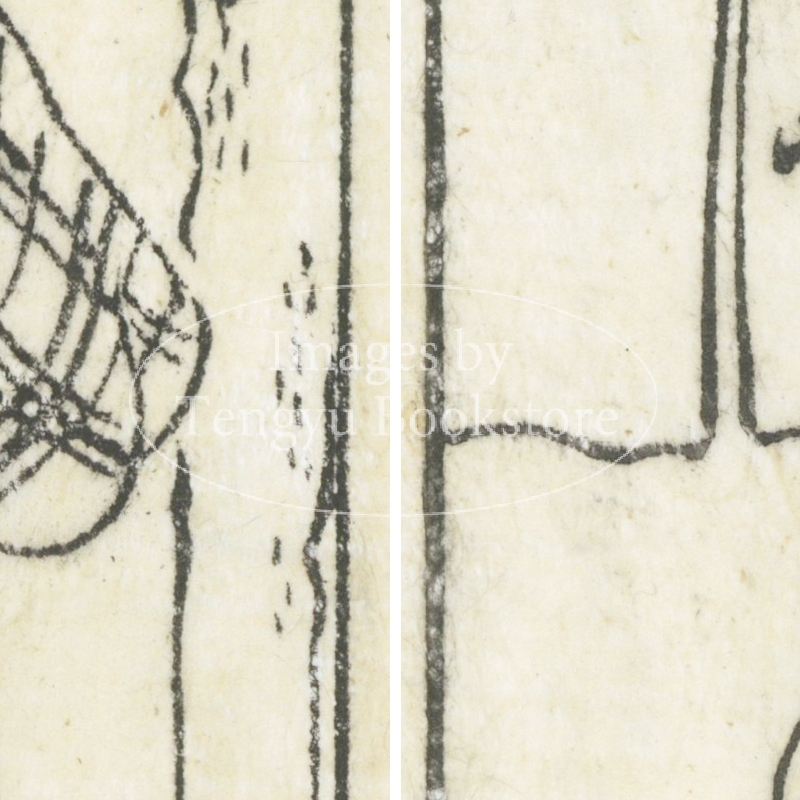 本来は2枚に分けて描かれた作品であるため、色味や図案の整合に若干の不統一があることをご了承ください。