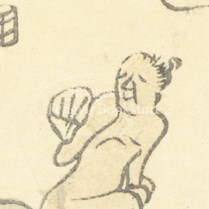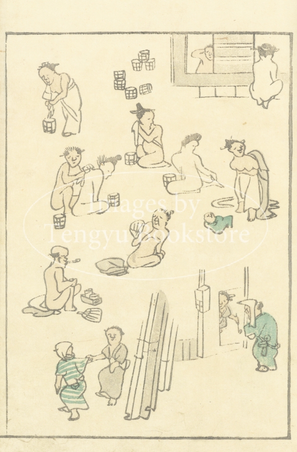 様々な状況の人物をデフォルメした略画を全ページに配した愛らしい画集であるとともに、江戸時代人の仕草の記録でもある興味深い一冊。