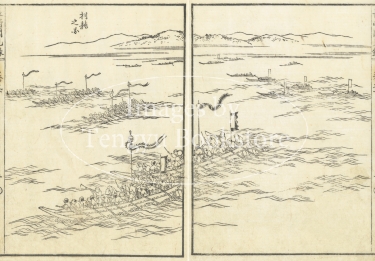 本来は2枚に分けて描かれた作品であるため、色味や図案の整合に若干の不統一があることをご了承ください。