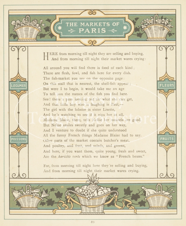 19世紀末イギリスを代表する絵本画家ウォルター・クレイン(1845-1915)の兄で、書籍デザイナーでもあったトーマス・クレイン(1843–1903)の絵本「外国にて」の挿絵。