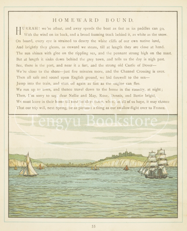 19世紀末イギリスを代表する絵本画家ウォルター・クレイン(1845-1915)の兄で、書籍デザイナーでもあったトーマス・クレイン(1843–1903)の絵本「外国にて」の挿絵。