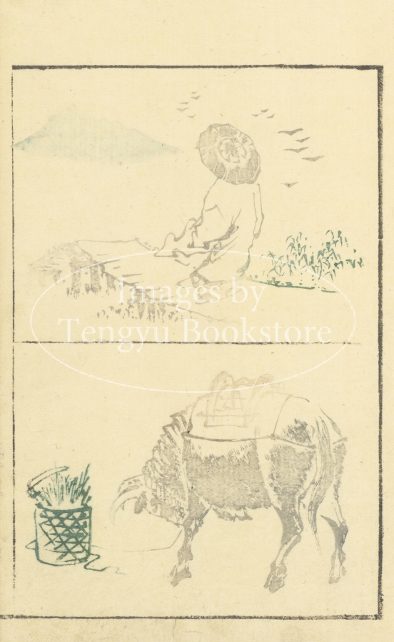 江戸時代中期の絵師 鍬形蕙斎(くわがた けいさい:1764-1824)の絵手本集中の1ページ。
