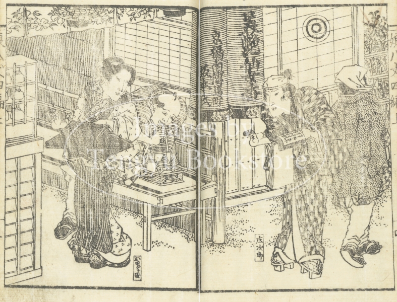江戸後期に刊行された人情本「錦の帯屋 雪の白木屋 軒並娘八丈」からの一枚。
