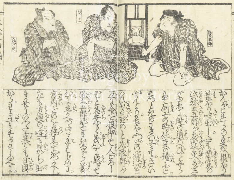 江戸後期の戯作者 為永春水(1790-1844)が物語を、同じく江戸後期の浮世絵師 渓斎英泉(1791-1848)が挿絵を手がけています。