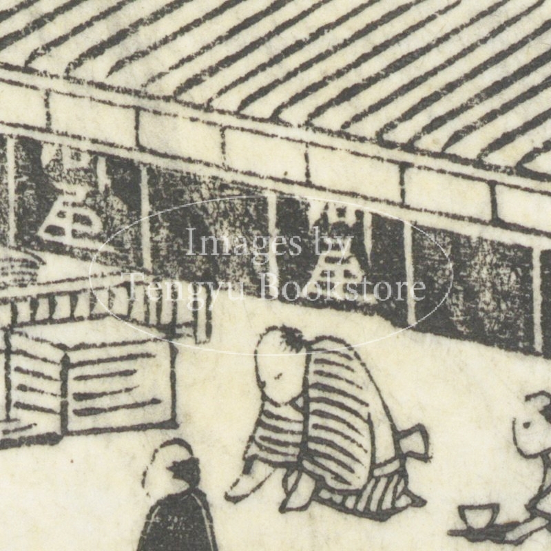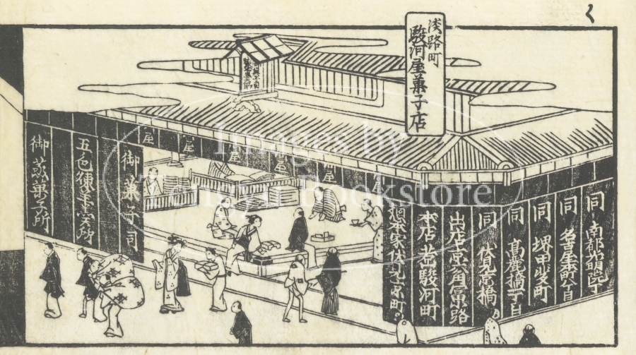 江戸時代に刊行された、大阪の店を紹介する冊子「浪花買物独案内」の挿絵。さまざまな業種の店の住所や店名などを載せた、街歩き案内です。