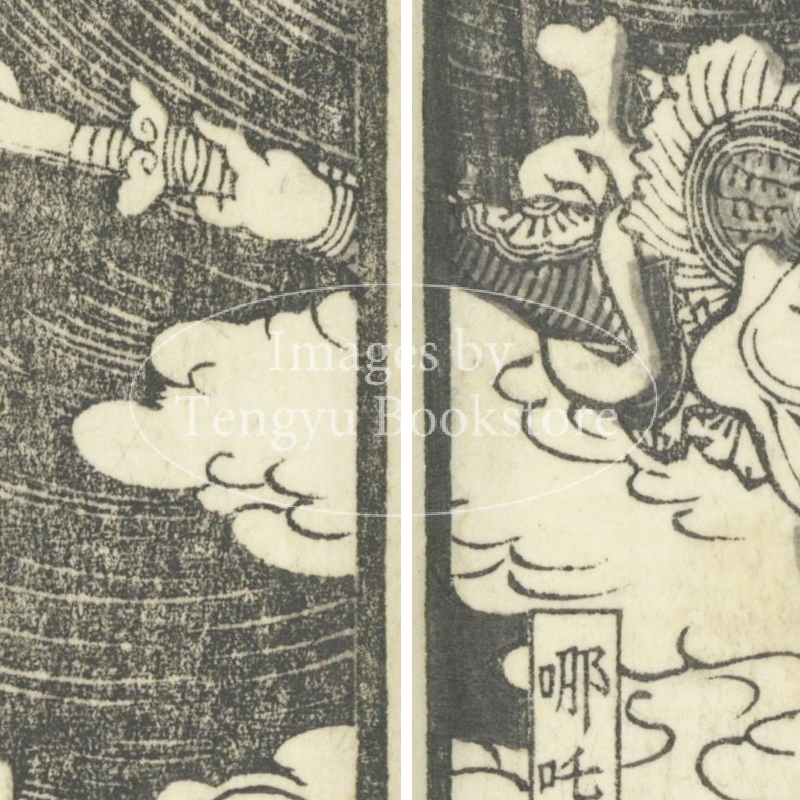 本来は2枚に分けて描かれた作品であるため、色味や図案の整合に若干の不統一があることをご了承ください。