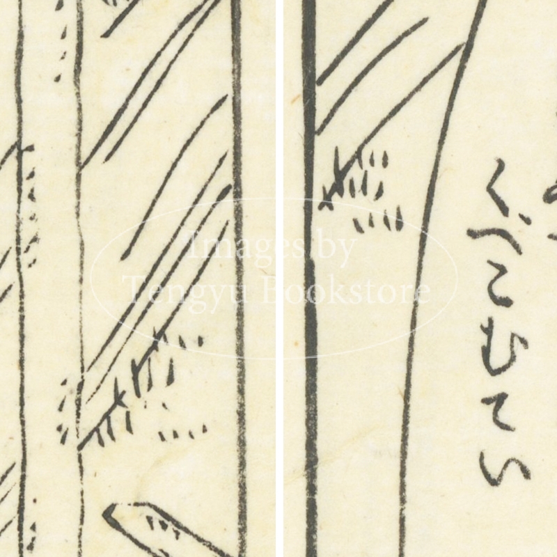 本来は2枚に分けて描かれた作品であるため、色味や図案の整合に若干の不統一があることをご了承ください。