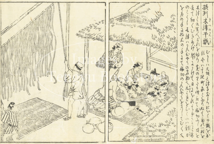 江戸後期に刊行された、日本全国の名産品紹介書「日本山海名物図会」からの一枚。