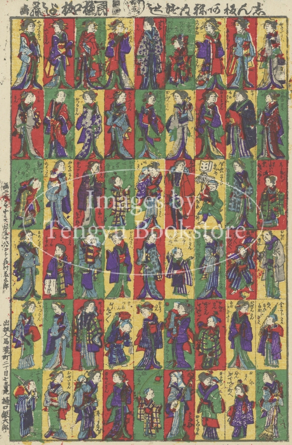 江戸・明治の浮世絵師 歌川芳藤(1828-1887)による、明治時代のおもちゃ絵「志ん板あねさま尽」。