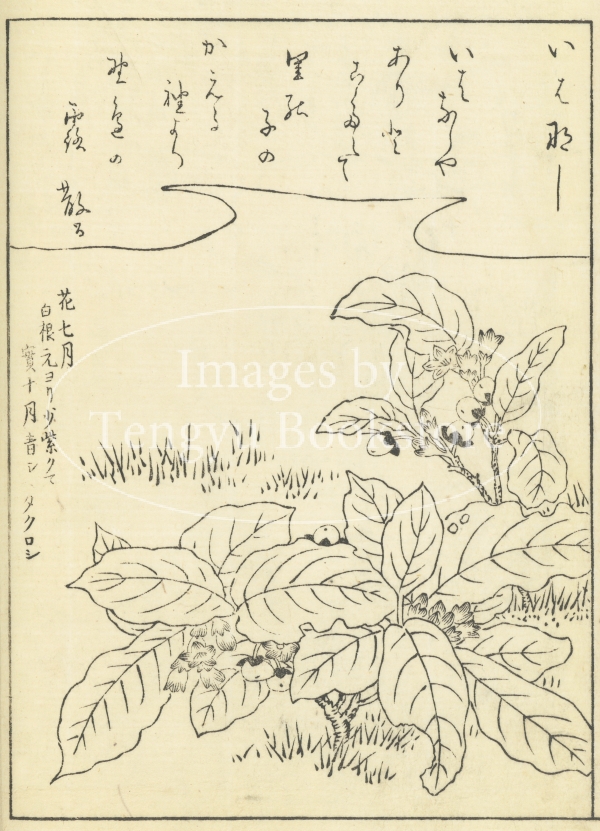 江戸中期に刊行された植物の絵手本「絵本福寿草」からの一枚。